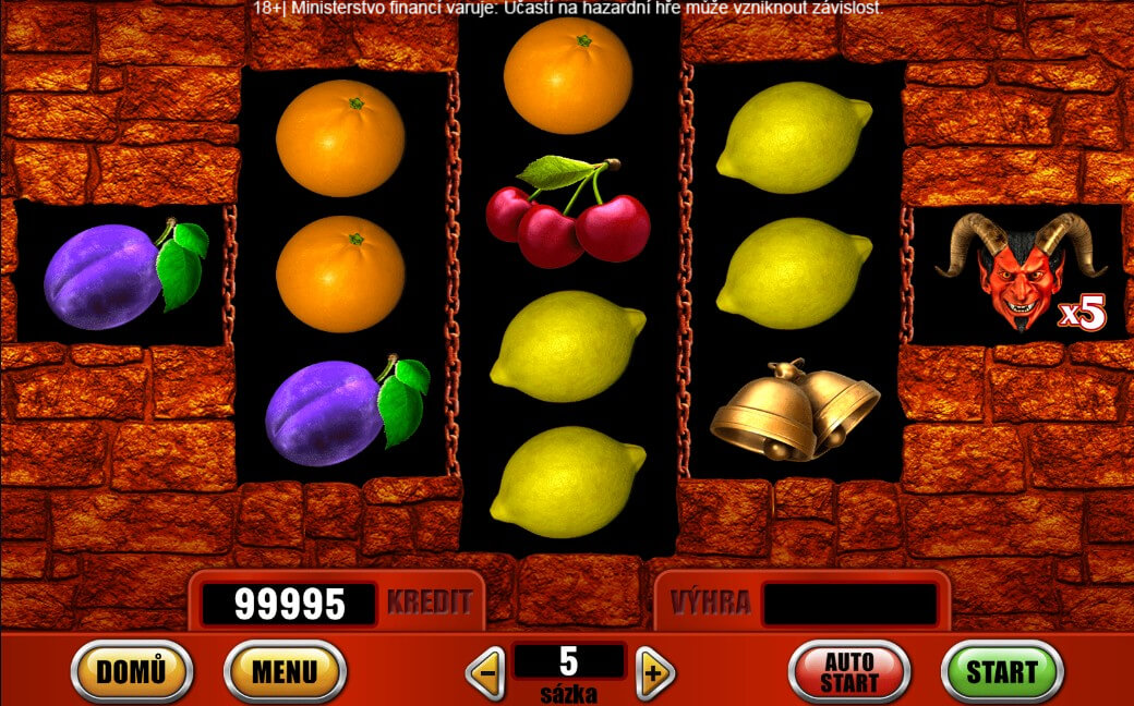 Automat Hell's Wall potěší hráče klasických výherních automatů s ovocnými symboly, ale zároveň i ty, kteří hledají něco netradičního. Místo vysmátého jokera na vás totiž čeká ďábel, který funguje jako wild symbol. To je ale vše, co tento slot od výrobce Vsaď a hrej nabízí.
